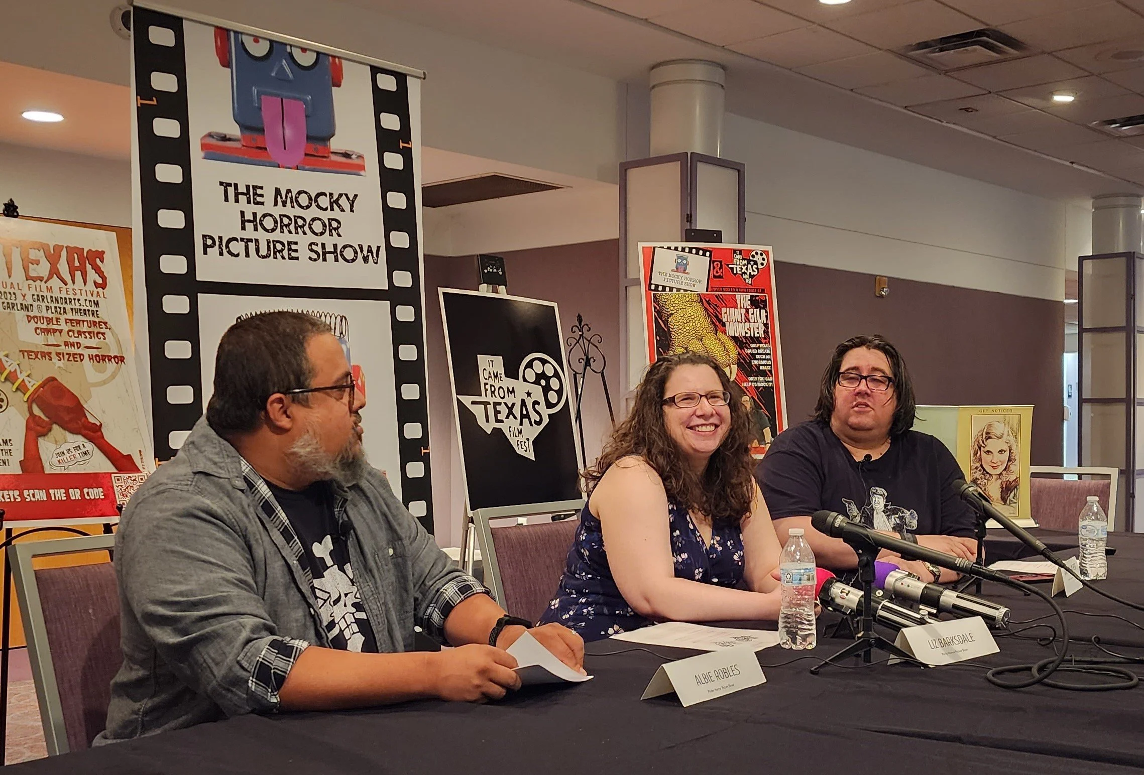The grand finale of It Came from Texas will feature more local talent and plenty of laughs. The Mocky Horror Picture Show consists of Danny Gallagher, Liz Barksdale, and Albie Robles. If you’ve ever seen an episode of Mystery Science Theater 3000, I don’t need to describe any more. For the uninitiated, MST3K and MHPS feature comedians making jokes and generally taking the piss out of movies that are, shall we say, less than quality entertainment. (Although, during the round table, Gallagher mentioned that writing and performing jokes centered around a good movie can be as fun as mocking a terrible movie.)