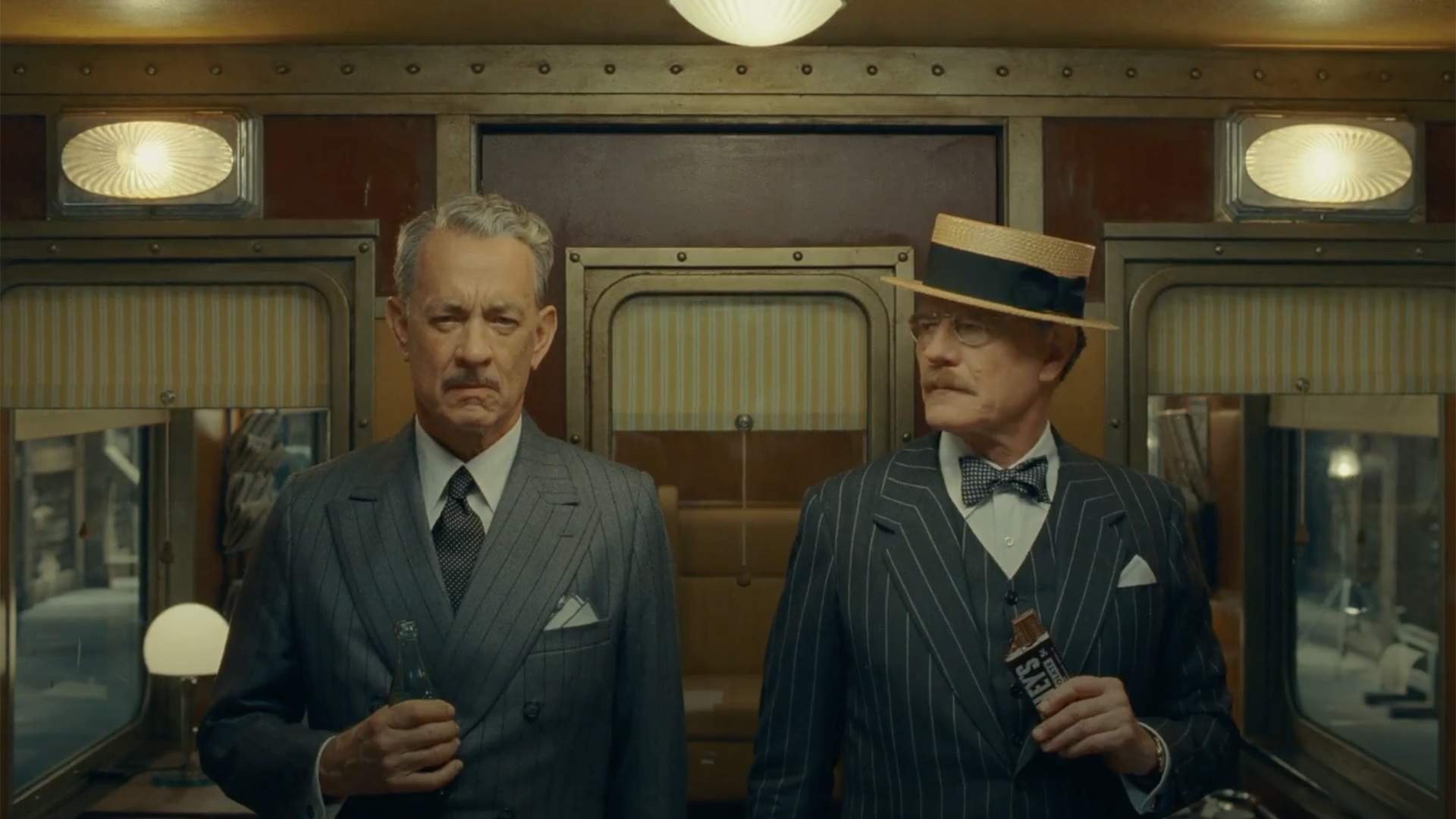 Tom Hanks (left) and Bryan Cranston (right) in a still from The Phoenician Scheme.